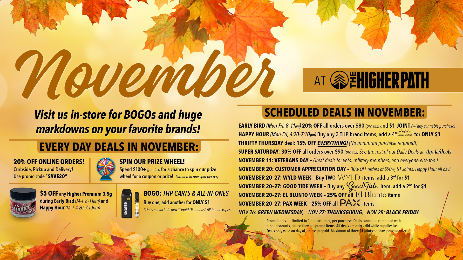 Sign up for our text messages today and stay up to date on our monthly, weekly, and daily deals here at The Higher Path!