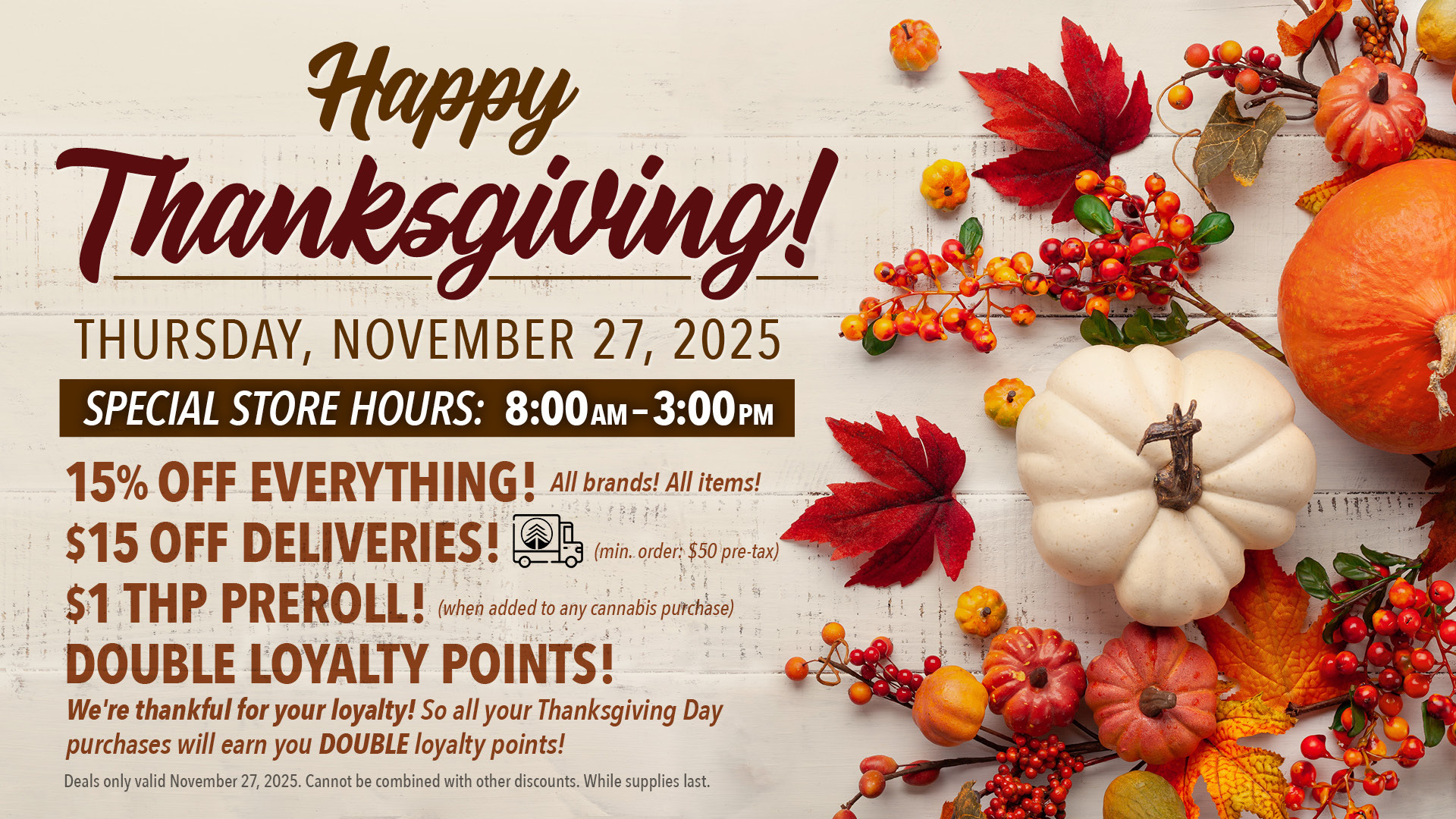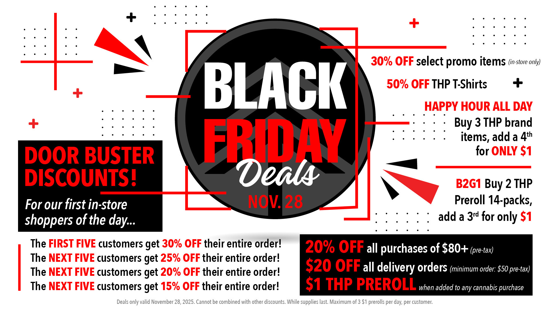 - Add a THP preroll to any cannabis purchase for only $1 (limit 1)
