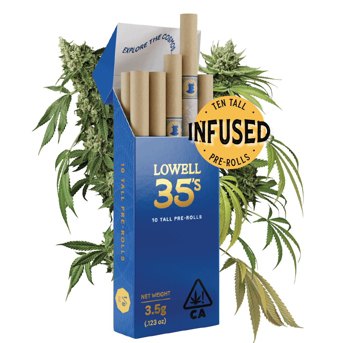 Lowell is proud to introduce Lowell Infused 35's. Our expert artisans blend the farm-fresh flower and high-quality concentrates together, ensuring a seamless fusion of flavors and aromas that will tantalize your senses. This translates to a richer, bolder smoke ready to take you to greater heights.